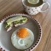 assiette coeurs / réalisée au tour de potier / en grès blanc / émail transparent
