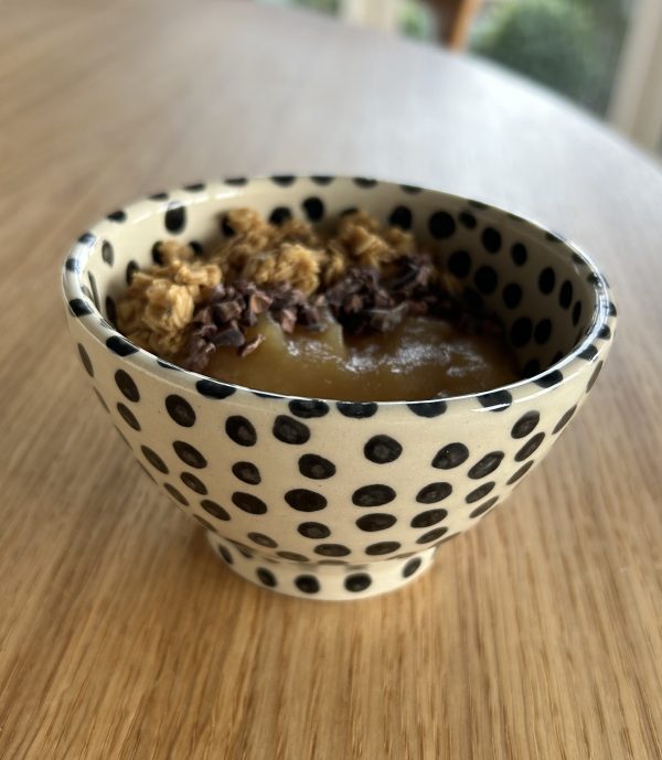 bol pois noirs / réalisée au tour de potier / en grès blanc / émail transparent / contenance 220ml