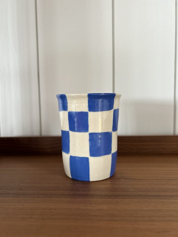 mug carreaux bleu roi / réalisée au tour de potier / en grès blanc / émail transparent / contenance 250ml