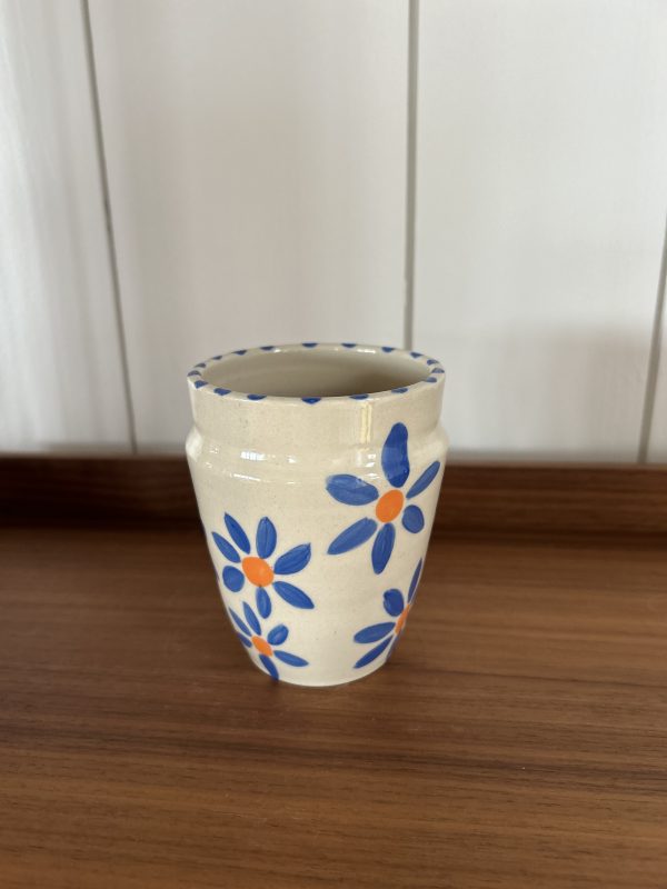 mug fleures bleu roi / réalisée au tour de potier / en grès blanc / émail transparent / contenance 200ml