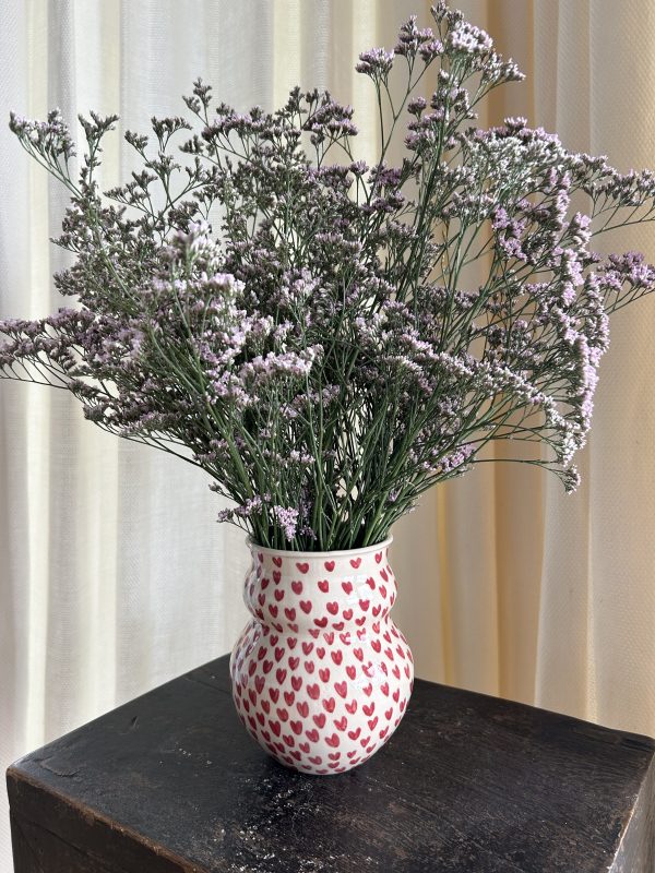 vase coeurs / réalisée au tour de potier / en grès blanc / émail transparent