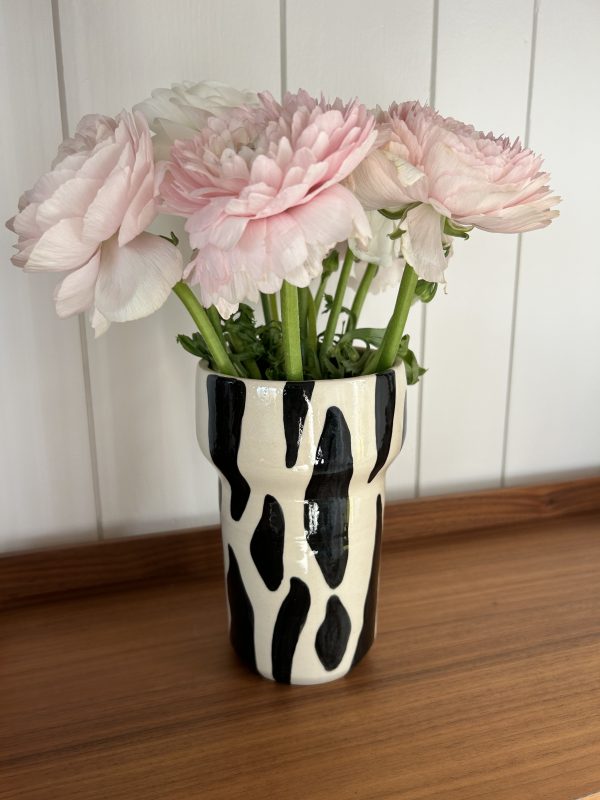 vase zèbre / réalisée au tour de potier / en grès blanc / émail transparent